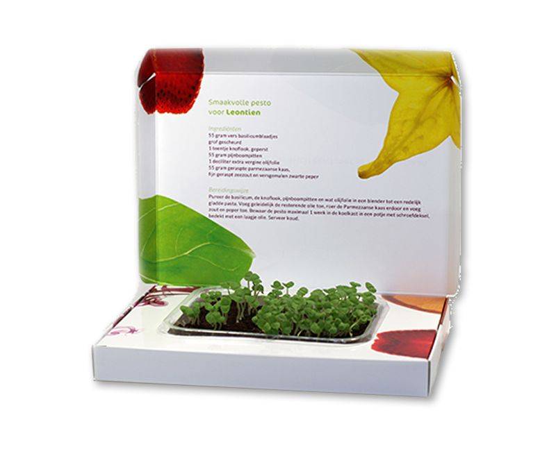 Deze persoonlijke Giftbox van Mijn Keukentuintje is een uniek verscadeau! Je kiest uit 3 ontwerpen, vervolgens kies je basilicum, munt of tuinkers en voeg je er een persoonlijke boodschap aan toe. Op deze manier wens je iemand op originele wijze een goede gezondheid of groei toe. Bij verjaardagen, een nieuwe baan, een nieuwe huis, als uitnodiging voor een afspraak, of gewoon als bedankje.