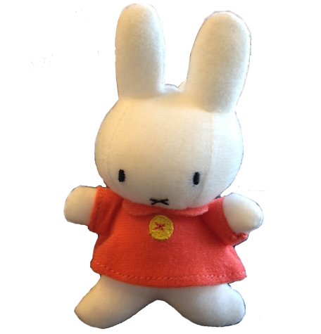 Wie kent 'm niet, nijntje. Pluche knuffel van 11 cm met een leuk oranje jasje.