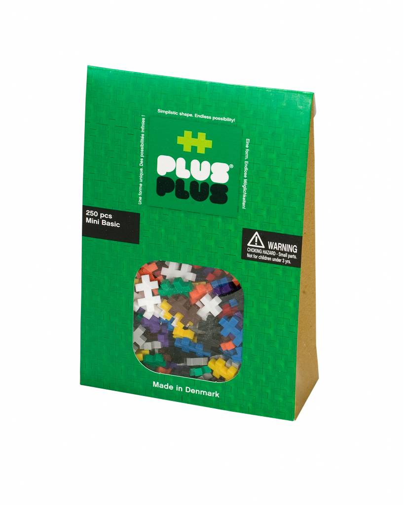 Hierin zitten 300 Plus-Plus mini buwsteentjes stukjes met de kleuren blauw, wit, zwart, oranje, groen, paars, geel, rood, grijs en bruin in een mix.