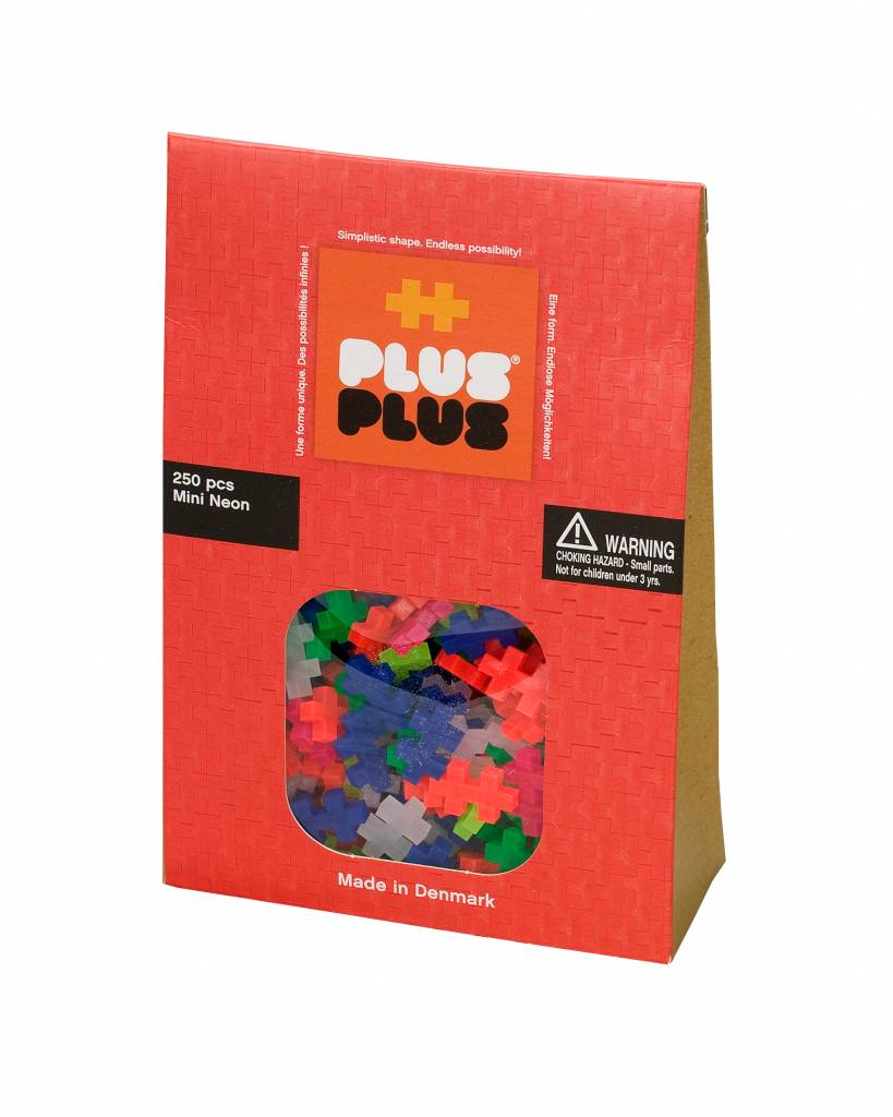Hierin zitten 300 Plus-Plus mini bouwsteentjes met de neonkleuren blauw, wit, roze, groen, oranje en geel in een mix.