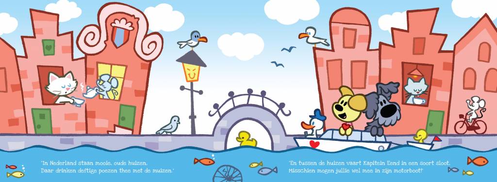 Hallo Nederland! is het eerste deel in een nieuwe reeks kartonnen boekjes in panorama van de liefste hondjes van de hele wereld: Woezel en Pip!